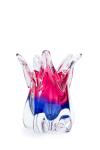 Pequeño jarrón Art Decó de boca ondulada en tonos frambuesa y morado. Fábrica de vidrio Chriska, Bohemia, Checoslovaquia, C. 1940.