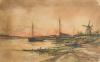 ROBERT WILLIAM ARTHUR ROUSE (1867-1951). Segunda mitad del siglo XIX - Playa con barcos de pesca y un molino
