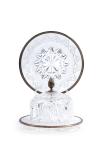 Quesera en cristal tallado con decoración estrellada y remates y perfiles en plata.
