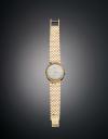 Reloj vintage de caballero, caja circular, brazalete realizado en oro de18 K, esfera beige, maquinaria manual, numeración en trazos aplicados. Número de serie 4719-58732