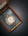 Reloj realizado en oro rosa de 14 k, doble tapa centrada en decoración de motivos incisos vegetales grabados a buril en esmalte azul y negro, . Esfera isabelina de cartelas recortadas e indices horarios romanos en negro, guarda polvo en metal. Sistema de carga manual No.40269. Se acompaña con llave, cristal de repuesto y caja en madera. Estado: No esta en marcha.