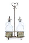 Recipientes en cristal tallado con decoración grabada al ácido de guirnaldas. Sobre patitas de garra sobre bola.