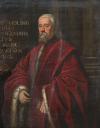 En la zona izquierda de la imagen se aprecia una inscripción donde se puede leer “us molino/ lois y/ curatoris/ lius/ i marci/ curator”. La catalogación que nos vino de base era que era el retrato representa a un procurador de San Marco, de la República de Venecia, llamado Marco Molino. Sin embargo, tal dato no lo hemos llegado a encontrar en el texto. Tal nombre no se ve completo, o bien porque la tela esta doblada en el borde o bien porque ha sido cortada. En cualquier caso, el retrato es la efigie de un procurador veneciano, vestido como tal, con toga de terciopelo color vino Burdeos, sin decoración en ella como a veces solían llevar, ejemplo ello son los retratos de los procuradores de Giovanni Paolo Contarini, y con remates en las mangas de piel armiño y el exterior de la solapa. La base o fuente de inspiración, pose y tipología del retrato es sin duda los retratos de Jacopo Tintoretto, como el retrato del procurador Andrea Cappello, de 1561, conservado en la Accademia de Venecia o el retrato de Gabrielle Emo, de 1572, en el Art Museum de Kress. La obra catalogada como escuela veneciana, será de un pintor de la Serenísima muy cercano al taller o modelos de Jacopo o Domenico Tintoretto, o que incluso habría podido trabajar en su taller formándose.