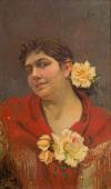 JUAN SÁNCHEZ ALDAZ (Puerto de Santa María, Cádiz, c. 1860 - activo en Sevilla 1912). Fines siglo XIX - Retrato de gitana con mantilla