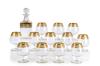 Con decoraciones grabadas en dorado. Formado por licorera y 12 copas. Con marcas.
