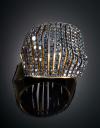 Realizada  en oro amarillo de 18 K, motivo bombé asimétrico calado con diamantes negros con un peso aproximado de 2.30 cts.
