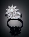 SORTIJA CON BRILLANTE CENTRAL RODEADO DE PEQUEÑOS BRILLANTES EN ORO BLANCO DE 18 K