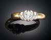 Realizada en oro amarillo/blanco, ambos de 18 k, diseño con centro en oro blanco y diamante talla brillante engastado en chatón, con un peso aproximado de 0,48 cts. Una estimación en color y pureza: H-I/VS1-VS2.