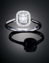 Realizado en oro blanco de 18 K, con diamante central en talla cuadrada y orla de brillante con peso total aproximado de 0.48 cts.
