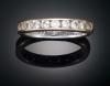 Realizada en oro blanco de 18 k, diseño motivo alianza con diamantes talla brillante engastados en carré, con un peso total aproximado de 0,77 cts. Una estimación en color y pureza: H-I /VS2-SI1.