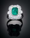SORTIJA CON ESMERALDA Y DIAMANTES EN ORO BLANCO DE 18 K