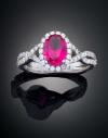Realizado en platino, motivo princesa de gales con rubí talla oval engastado en garras con un peso estimado de 1,80 cts. Orlado de brillantes, hombros en pave de brillantes con un peso total aproximado de 1,56 cts.