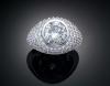 Realizado en oro blanco de 18 k, motivo bombé con diamante central talla brillante, con un peso aproximado de 4.00 cts y una estimación de color y pureza: J-K/I1 -I2 cuajado de diamantes talla brillante engastados en pavé, peso total aproximado de 3.80 cts. Una estimación de color y pureza: G-H/SI1-SI2.