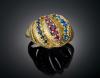 SORTIJA ESTILO BOMBÉ CON TRES LINEAS DE ZAFIROS Y RUBÍES