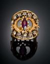 Realizada en oro amarillo de 18 K, ornamnetado con motivos vegetales, orla de diamantes y cuarzo amatista .