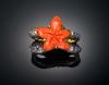 Realizada en doble montura de oro amarillo de 18 k y plata, formado por centro con diseño de estrella de mar, en coral con un peso estimado de 7,91 cts. Hombros flanqueados en diamantes, un peso total aproximado de 1,00 cts, y zafiros engastados en grano, peso total estimado de 0,42 cts.