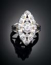 SORTIJA LANZADERA ANTIGUA CON DIAMANTES EN ORO BLANCO DE 18 K
