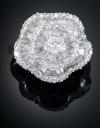 Realizada en oro blanco de 18 K, motivo en forma de rosetón con diamantes en talla brillante engastados en grano , lineas de baguette en carré, con un peso total aproximado de 3.50 cts, con una estimación de color y pureza: G-H/VS1-VS2.