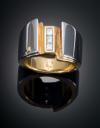 SORTIJA TIPO SELLO CON HILERA CENTRAL DE PEQUEÑOS DIAMANTES TALLA PRINCESA