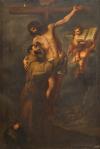 ESCUELA ESPAÑOLA. Principios del siglo XX - San Francisco abrazando a Cristo en la Cruz