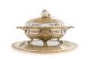 Exclusiva gran sopera o centro de mesa con presentador oval en plata sterling y baño de oro de Tane, Mexico.