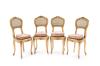 Realizado en madera tallada y dorada con asientos y respaldos en rejilla. Compuesto por sofá, pareja de butacas y cuatro sillas. Con cojines en seda damasquinada.