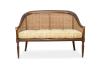 Canape de dos plazas modelo "Medusa" en madera de nogal, asiento y respaldo en rejilla, cojín en seda adamascada