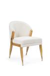 Silla en madera de fresno, respaldo curvo de diseño ergonómico y tapicería en bouclé color crudo.