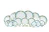 Formado por: 6 bajoplatos (uno con alero consolidado), 6 platos llanos, 6 platitos de pan, 4 platitos para entremeses y 6 tacitas de café con sus platos.