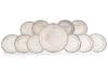 Vajilla en plata punzonada, ley 900. Modelo ingletado. Formado por fuente circular y diez platos.