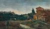 ESCUELA ESPAÑOLA (S. XX) - Vista del Alcázar de Segovia y el Monasterio de Santa María y San Vicente el Real