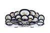 Se compone de: 24 platos llanos, 17 platos de postre, 12 platos hondos, 7 hueveras individuales, 2 fruteros de pie alto, 1 salsera con plato, 3 fuentes ovales de diferentes tamaños, 1 fuente circular, 1 sopera, 1 legumbrera, 1 ensaladera con pie, 6 rabaneras.