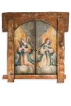 Puertas de Sacristía decoradas con escena del Éxtasis de Santa Teresa y de Santo Domingo y la exaltación de la Eucaristia en el anverso y ángeles en adoración en el reverso